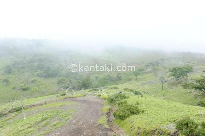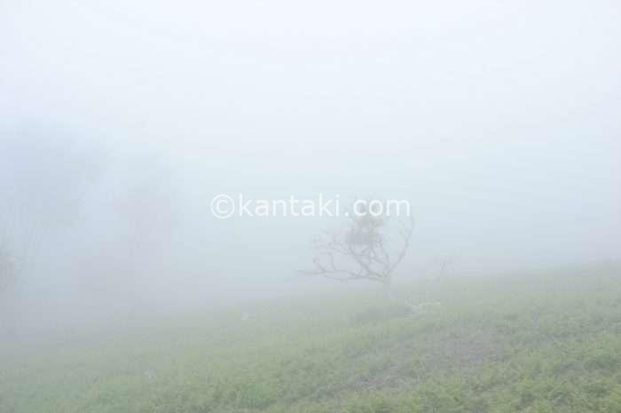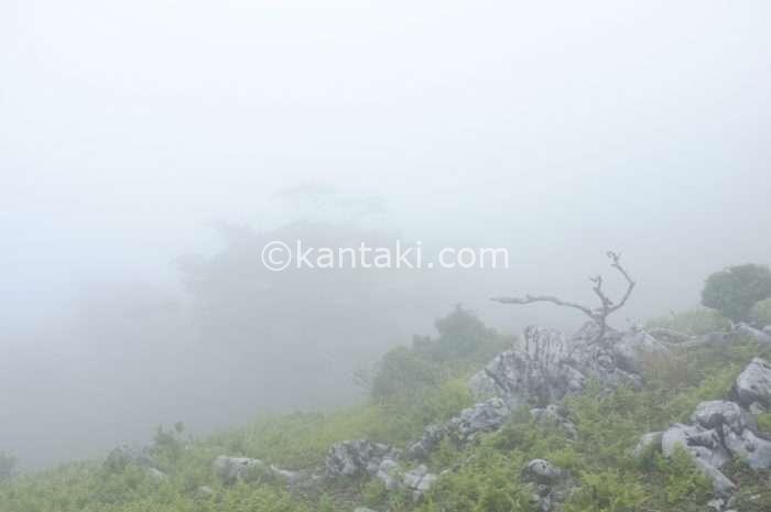 山頂に近づくにつれて、どんどん霧が出てきて何も見えない状態に…笑